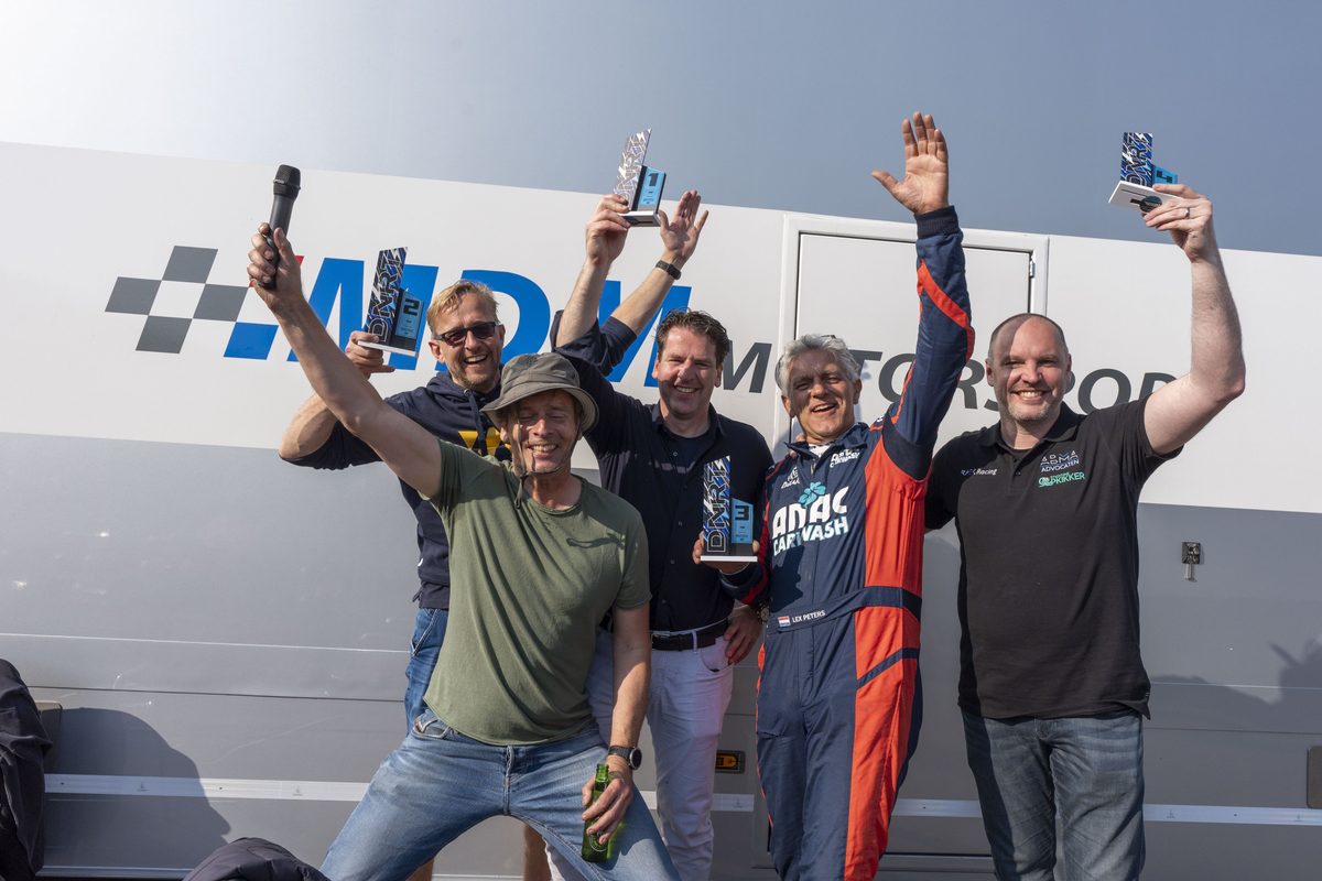 We meldden het al: race 2 stond in het teken van de inhaalrace van Sander Dullaart vanaf de laatste plek. Dullaart: “Echt alles ging goed in race 2. In de eerste bocht zat iedereen aan de buitenkant en kon ik binnendoor, hopsa, zo zes of zeven auto’s voorbij. Na ronde 1 lag ik al rond P10. Vervolgens bleef ik auto’s inhalen, en op een gegeven moment dacht: Hé, daar is de kopgroep. Nadat René de Groot er af ging en Jan Frensch meenam, schoof ik weer twee plekken door. Vervolgens heb ik Eric Sliphorst, Lex Peters, Willem en Ronald gepakt en dacht ik: Ik ga ‘m gewoon winnen!” En zo geschiedde. Lekker gewerkt, Dullaart!